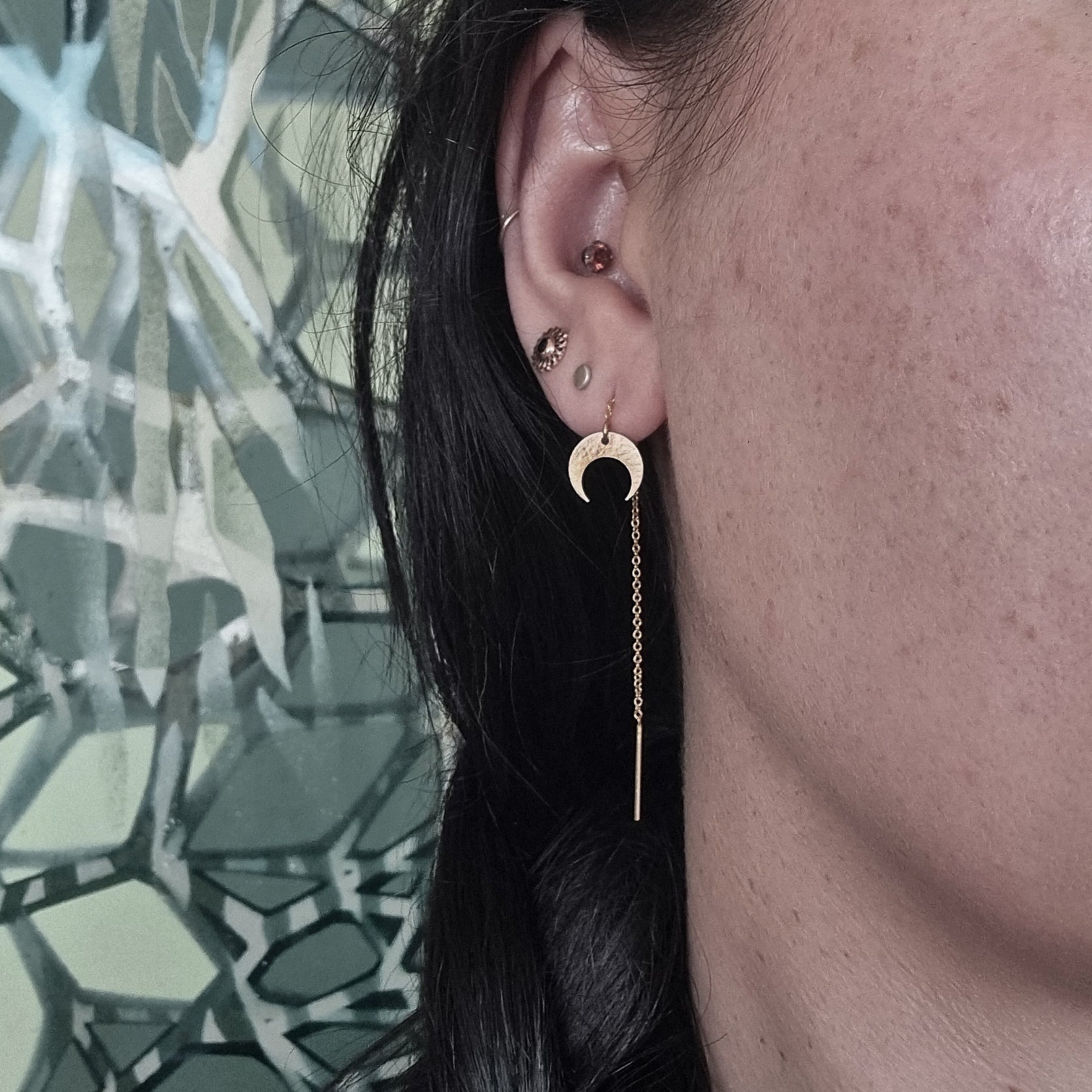 Mini textured waning crescent moon threads.